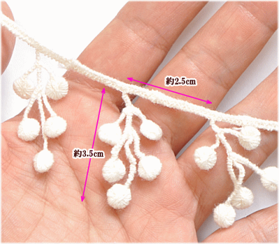 【店内P2倍】ポンポン ブレード 約3.5cm幅 5Y(約4.5m) 全3色 《 ケミカル レース 手芸用レース ボンボン フリンジ ふさ 綿 コットン ハンドメイド 手芸 手作り 》